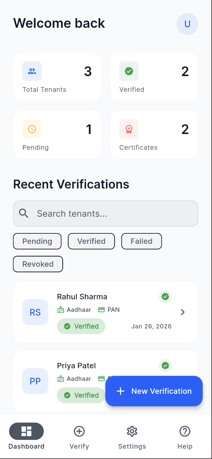 Reimagining tenant screening with cryptographic document hashing and blockchain proof, turning a trust-based process into a secure, tamper-proof verification system.
